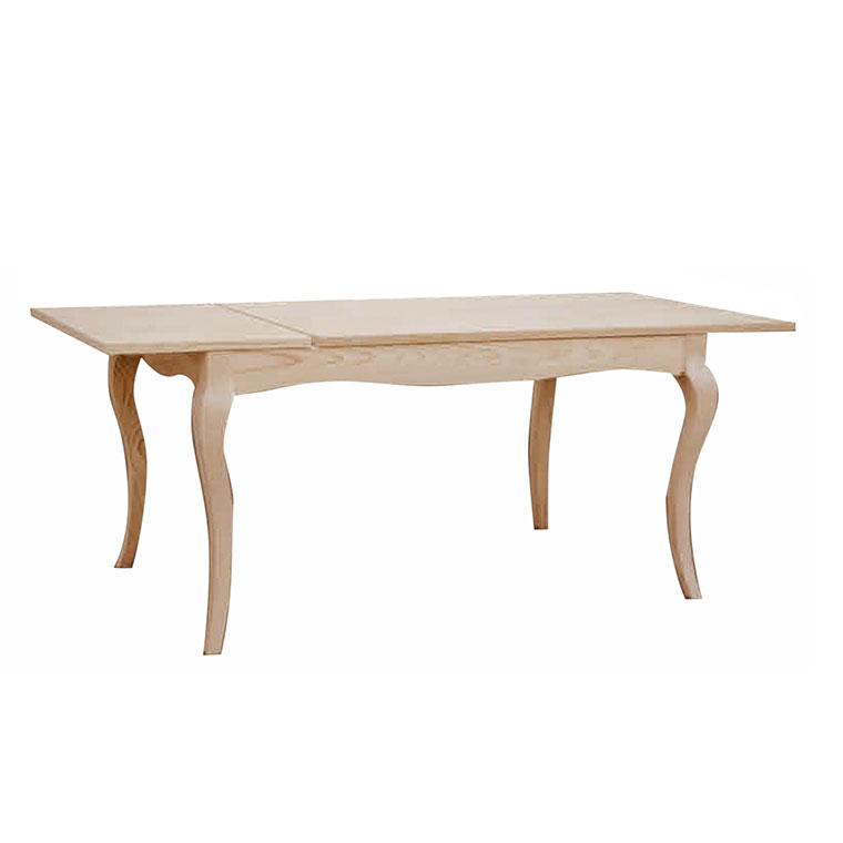 Elegante mesa rectangular extensible, disponible en 120,140,160 cm, con pata isabelina. Fabricado en madera de pino y acabado natural en crudo sin pintar.